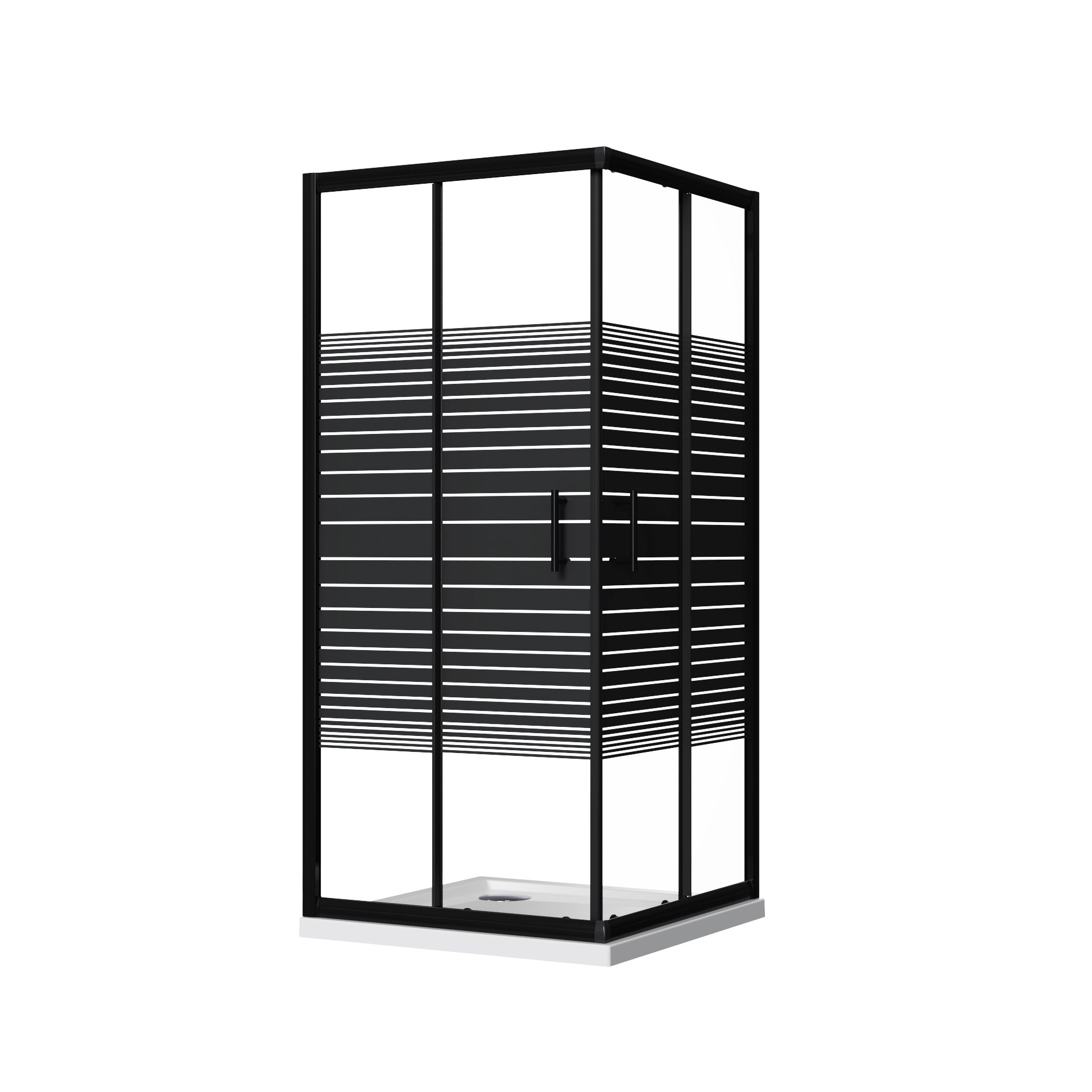 Mampara de ducha negra 70x100 en cristal templado serigrafiado de 6mm con instalación adaptable mod. Katariina