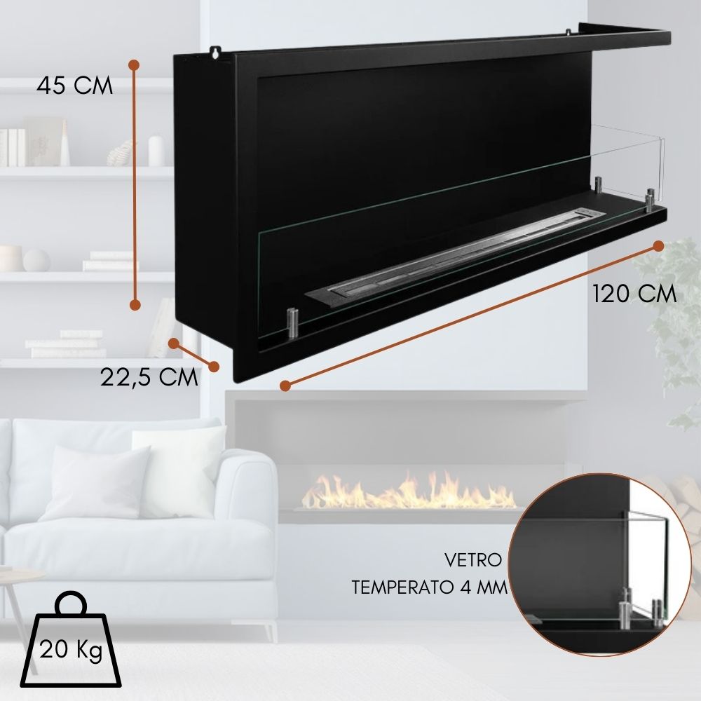 Camino a Bioetanolo da Incasso Biocamino da Parete Angolare, 1,25 lt Riscaldamento 30 m2, Bruciatore in Acciaio, Apertura DX 120 cm3