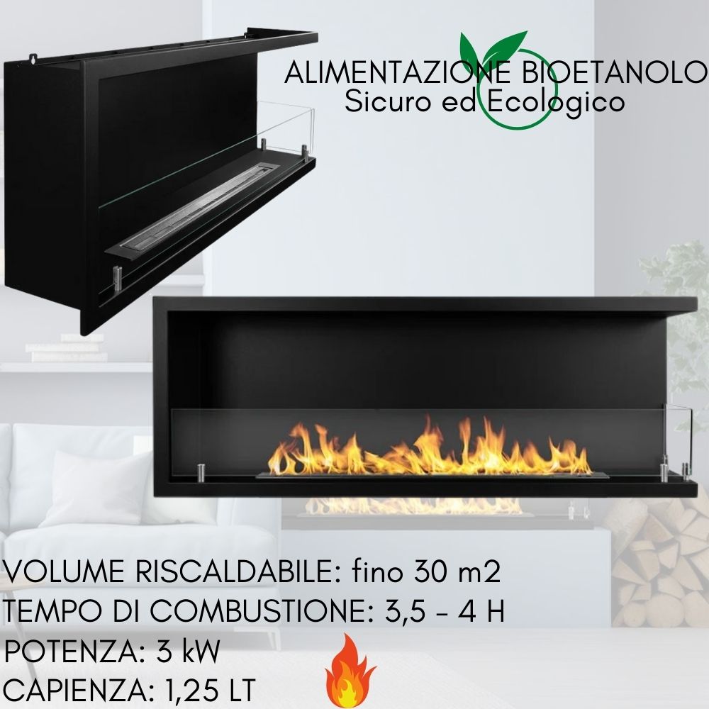 Camino a Bioetanolo da Incasso Biocamino da Parete Angolare, 1,25 lt Riscaldamento 30 m2, Bruciatore in Acciaio, Apertura DX 120 cm1