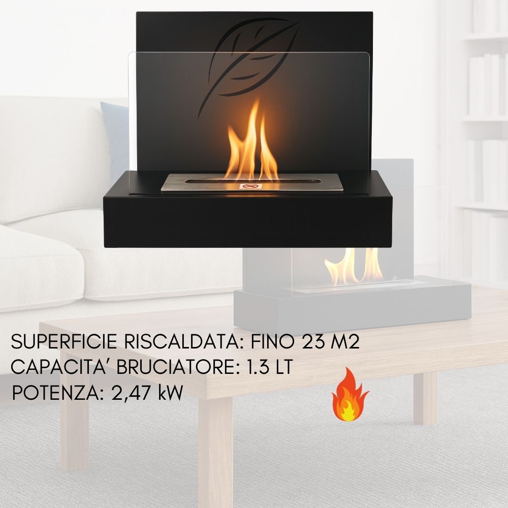 Camino a Bioetanolo da Pavimento o Muro Bruciatore 1.3 Litri Nero, Moderno