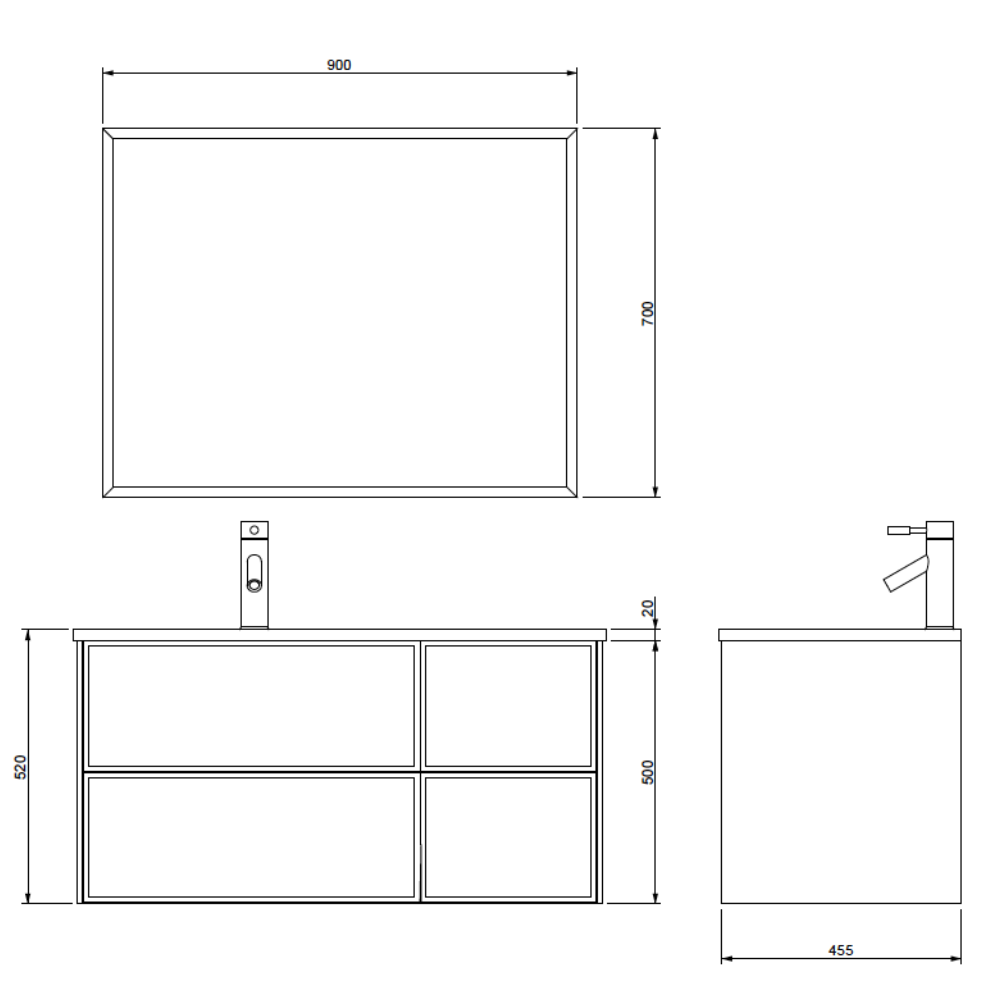 Caratteristiche: Wall-hung bathroom cabinet with sink and mirror, 4 space-saving drawers with soft-close, modern design