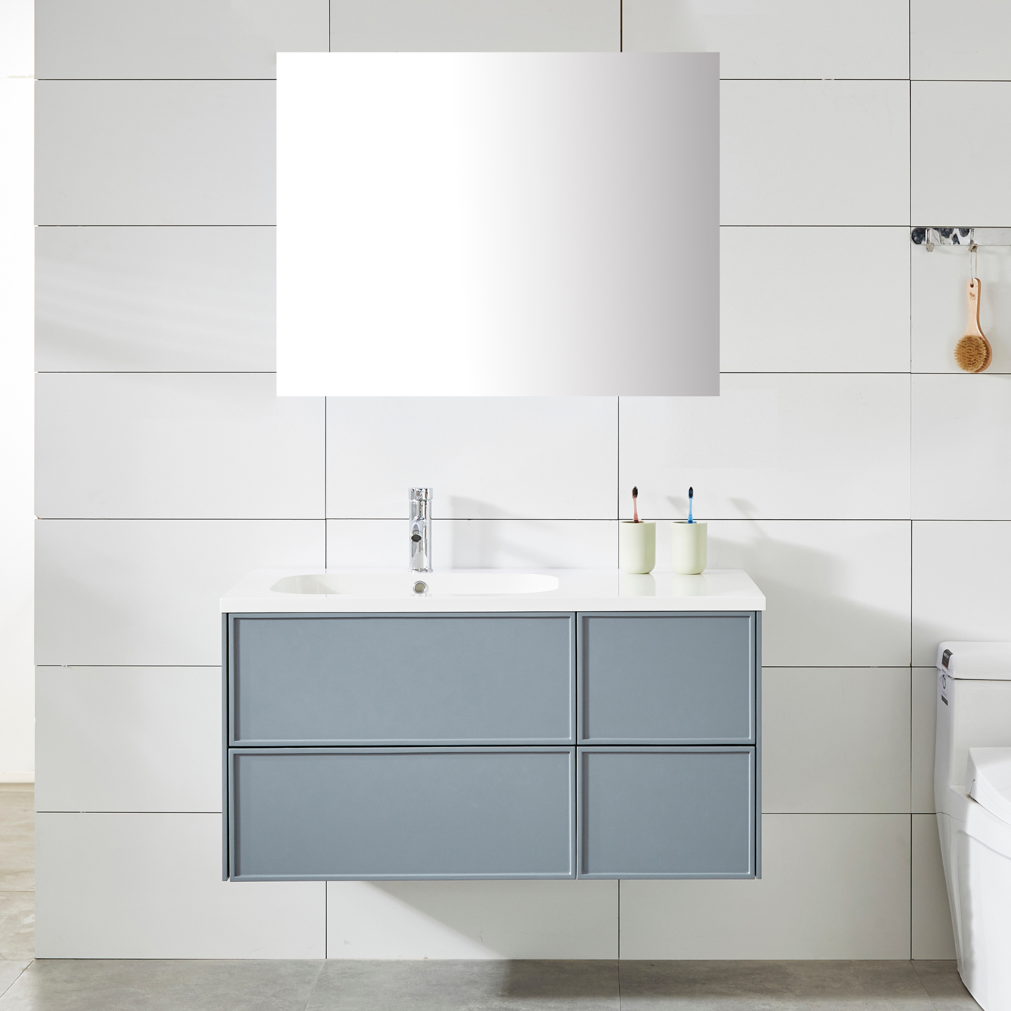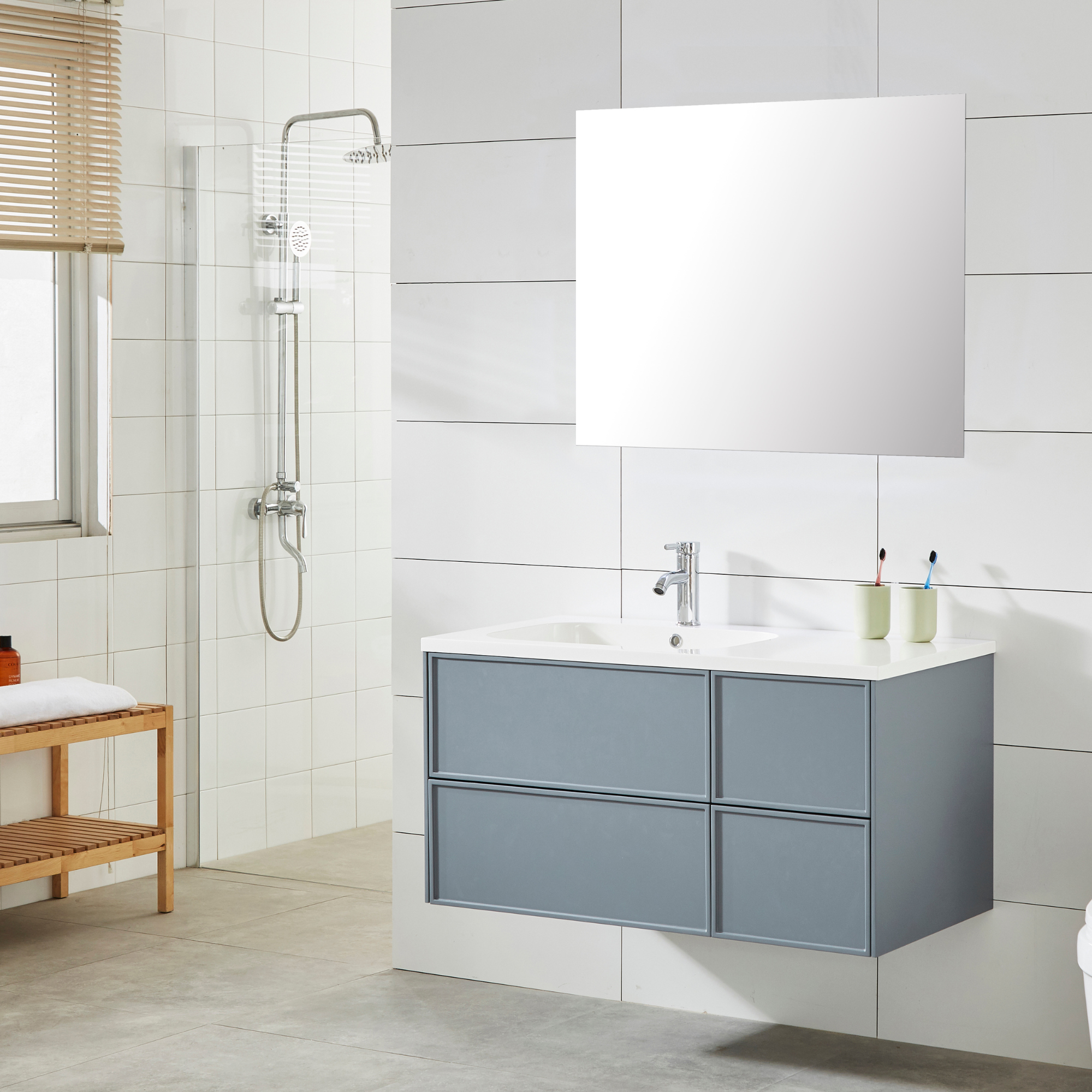 Mueble de baño suspendido 100 cm. Gris con lavabo y espejo mod. MALIBÚ