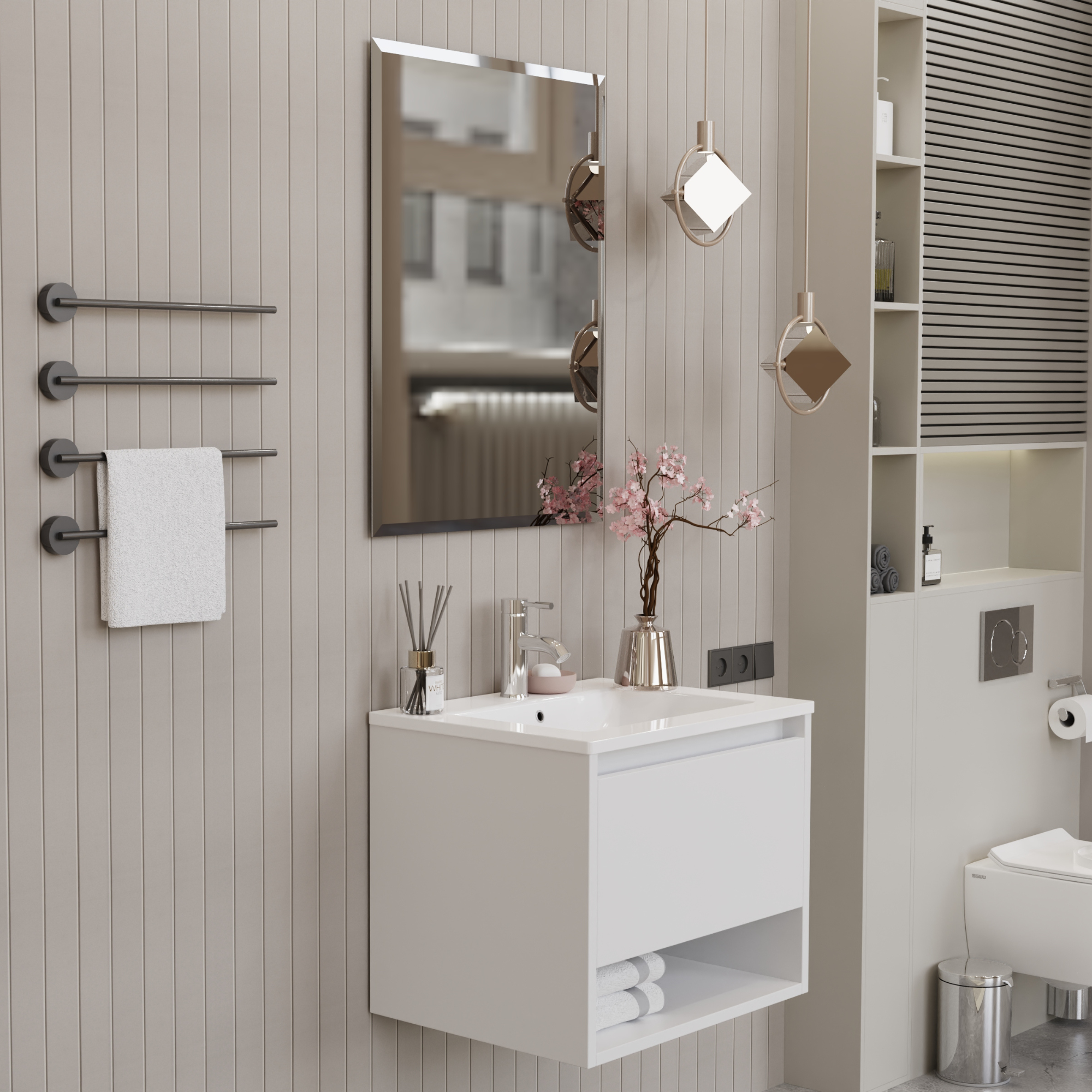 Mueble de Baño Suspendido Blanco Brillo 60 cm. con lavabo y espejo mod. MILÁN