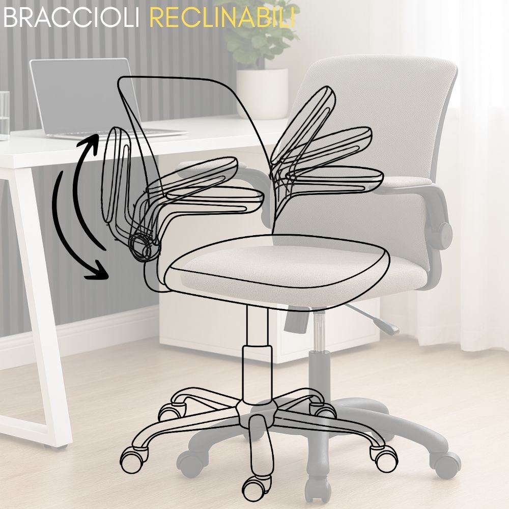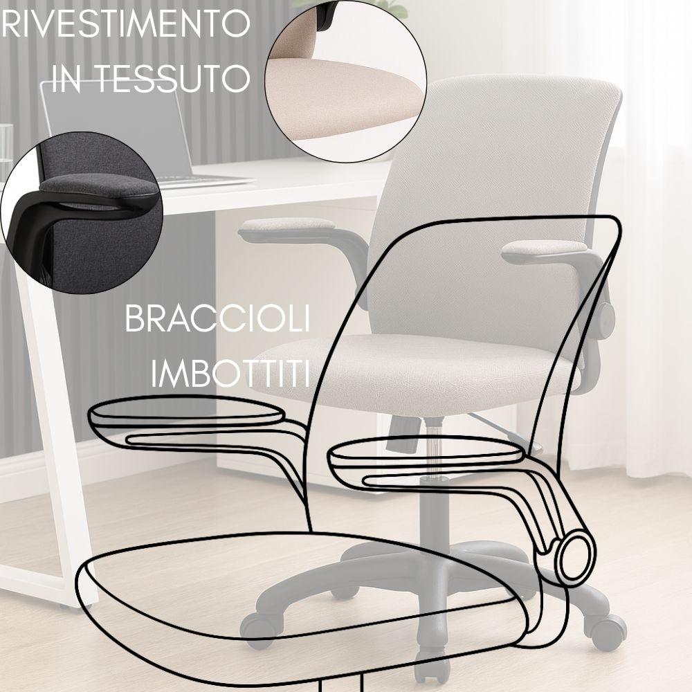 Sedia da Ufficio Ergonomica Girevole, Braccioli Reclinabili, Imbottita