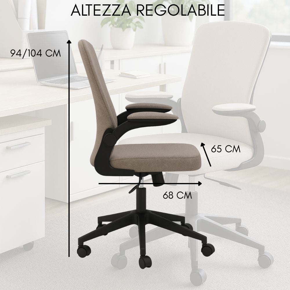 Sedia da Ufficio Ergonomica Girevole, Poltrona con Braccioli Pieghevoli