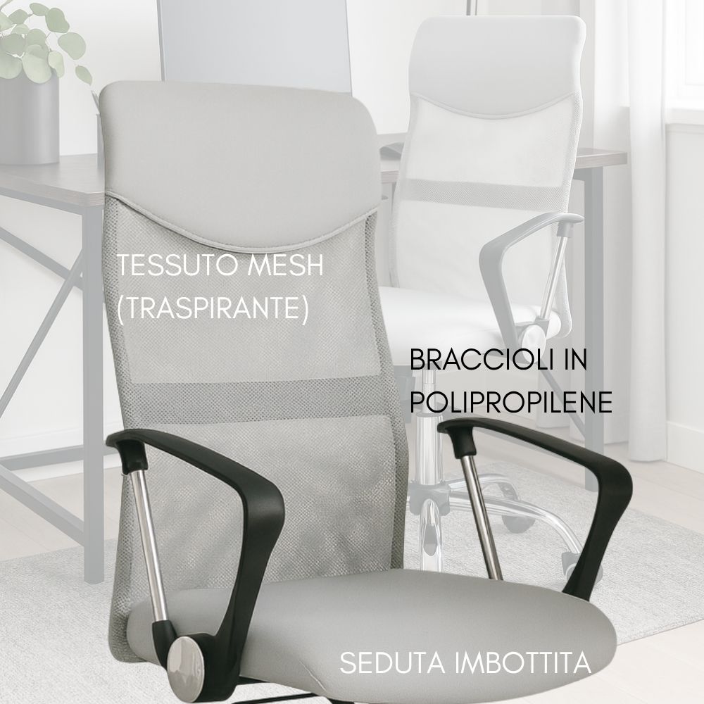 Caratteristiche: Sedia da ufficio ergonomica, poltrona girevole completa di braccioli e altezza regolabile