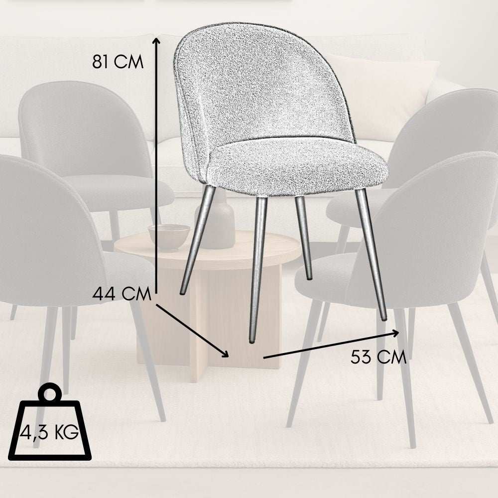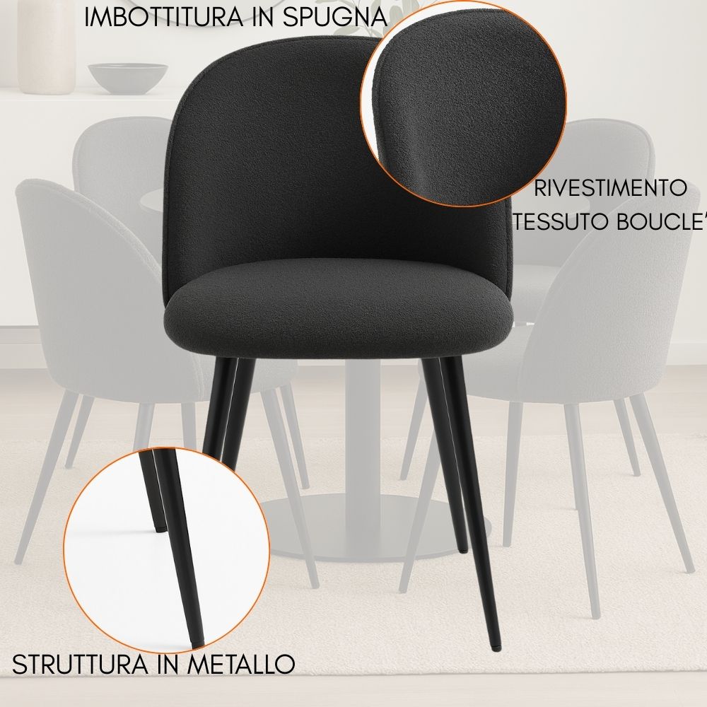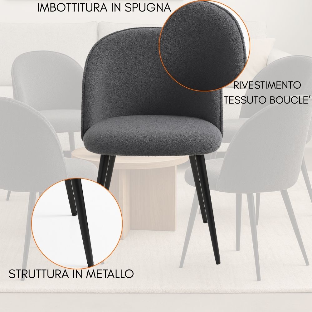 Caratteristiche: Set x4 Sedia sala da pranzo imbottita tessuto bouclè, design moderno per soggiorno, salotto...