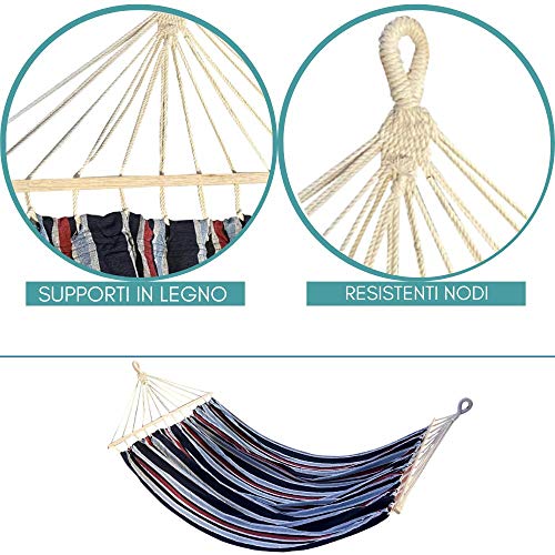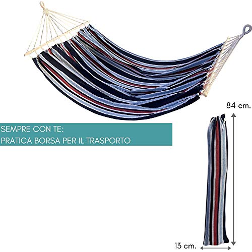 ZIK Amaca da Giardino per Esterno, Larga e Leggera, in Cotone con Supporto in Legno e Borsa - Multicolor1