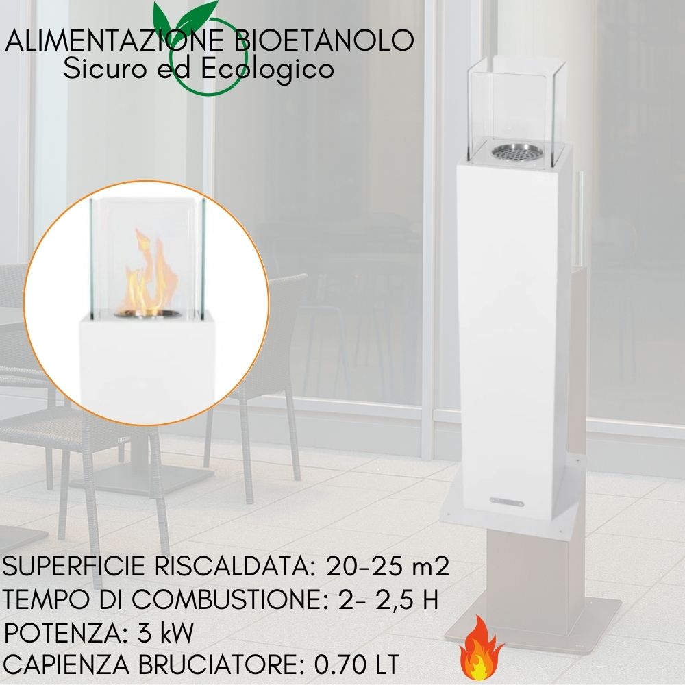 | Caratteristiche: | Bioethanol fireplace, indoor or outdoor bio-fireplace stove, heated surface up to 30 m2, 0.7 litre burner |