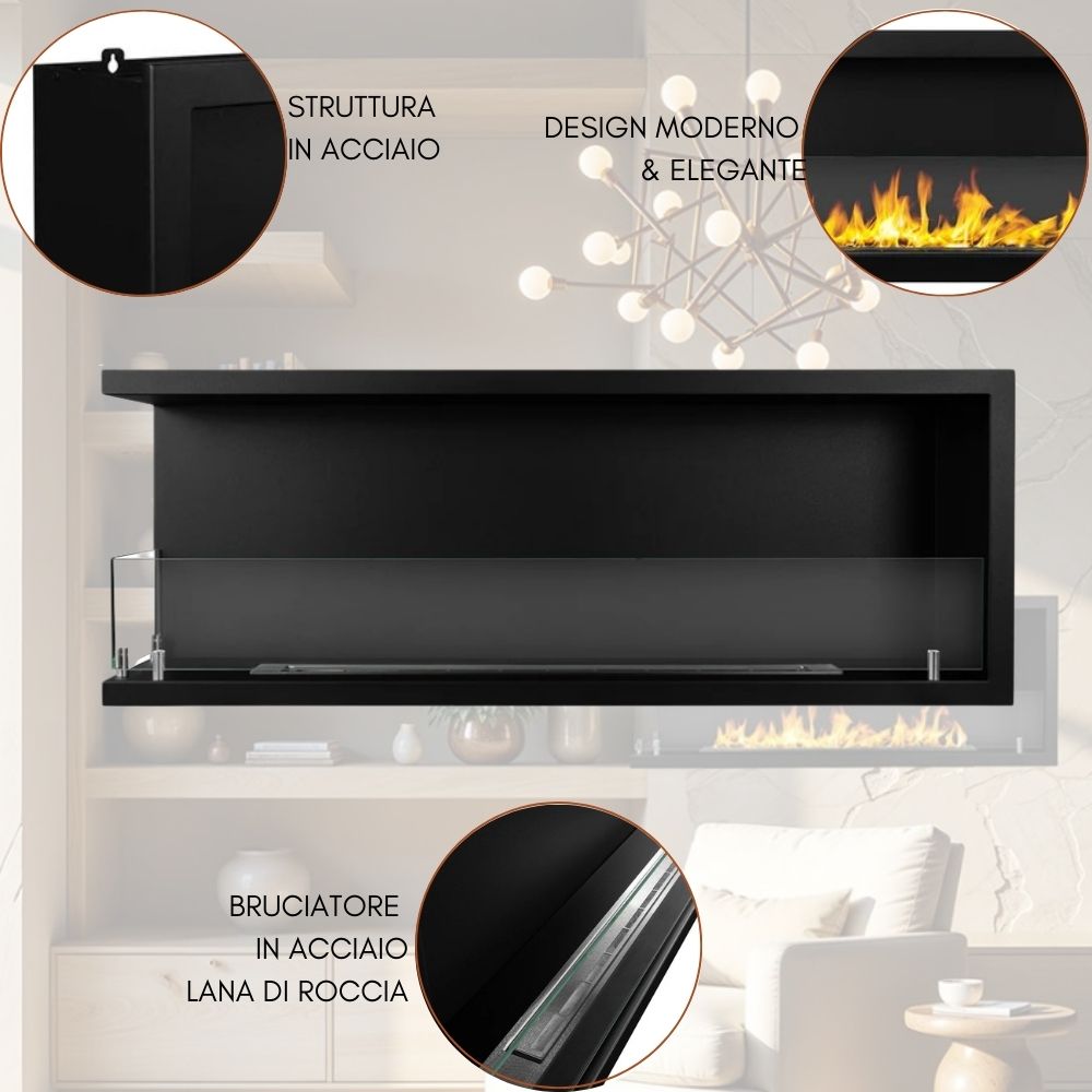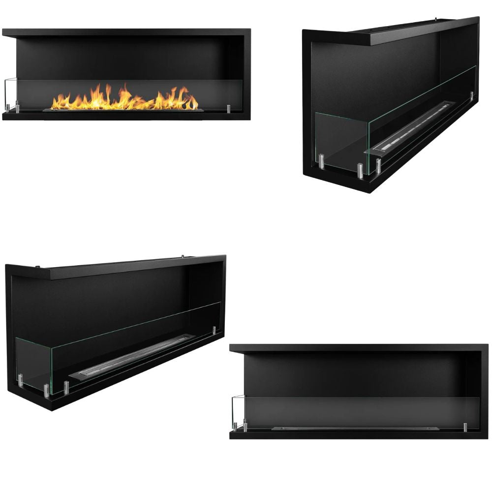 WHAT YOU GET: - x1 Corner Built-in Bioethanol Fireplace, 1.25 lt Wall-Mounted Biofireplace, Steel Rock Wool Burner – Black